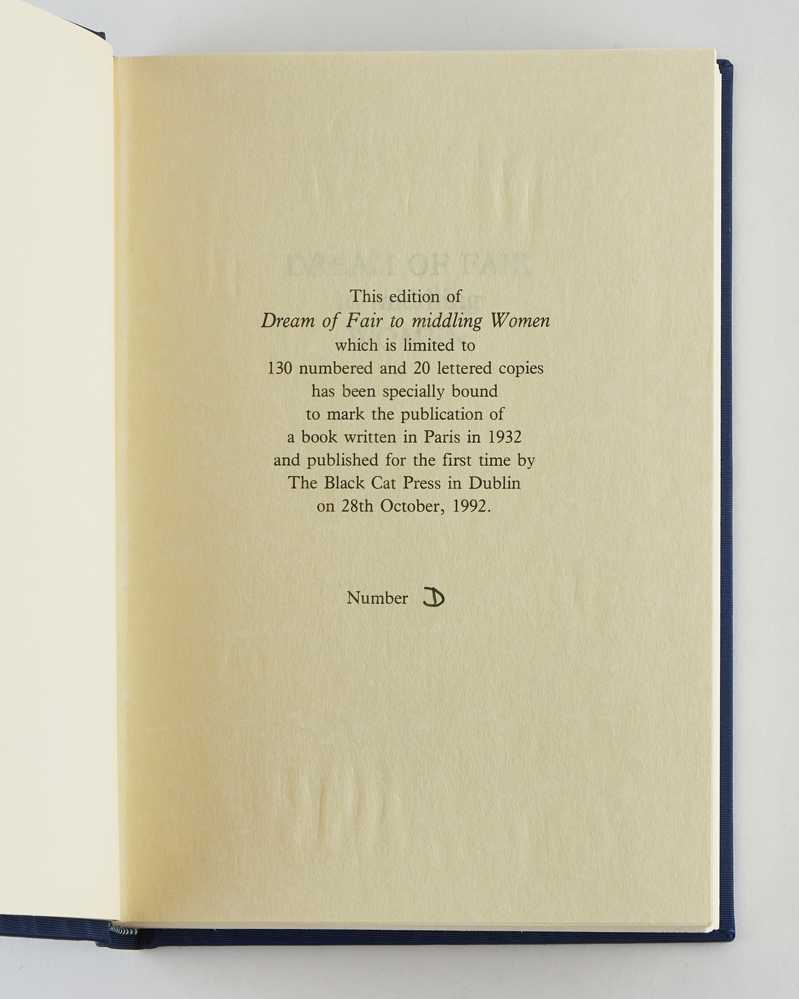 BECKETT, Samuel. Dream of Fair to Middling Women. Dublin: The Black Cat Press. 1992.