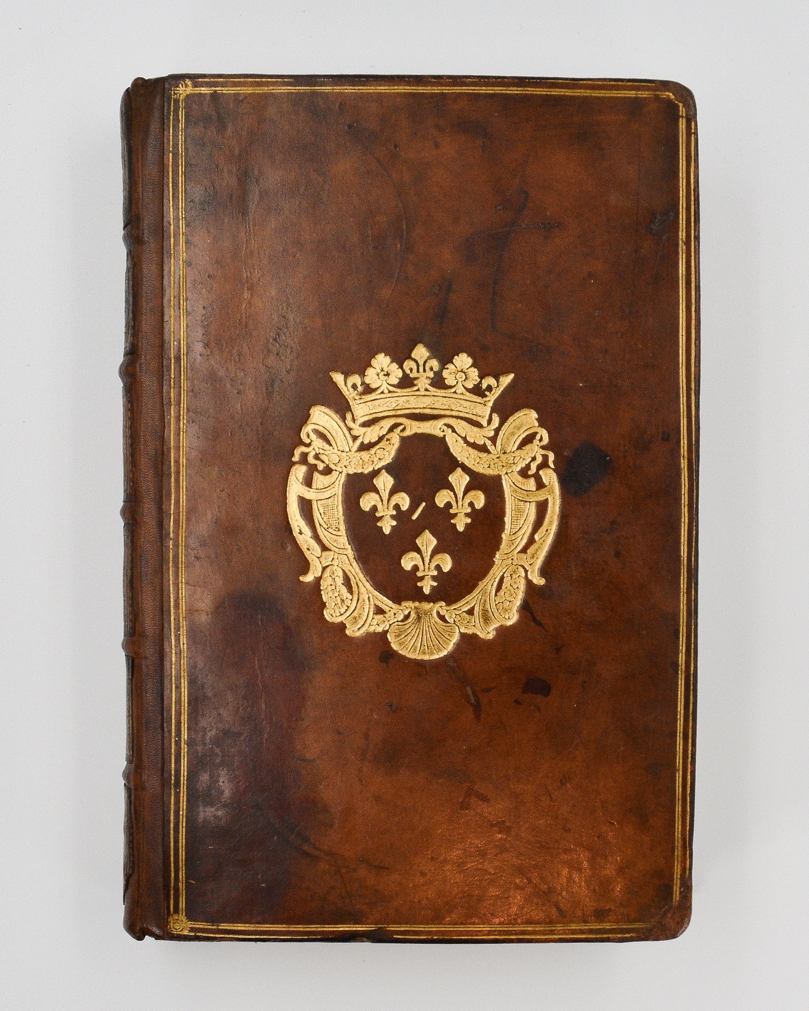 The binding of the present copy, strictly contemporary, was embellished at a later date with gilt armorial supralibros imitating those of a prince légitimé (a legitimised son of the King of France) or one of his descendants. For comparison, see the bindings of Louis-Auguste de Bourbon, duc du Maine, and Louis-Alexandre de Bourbon, comte de Toulouse. The shield form here closely resembles Olivier pl. 2477, Fer no. 1, recorded on a book printed in 1741.