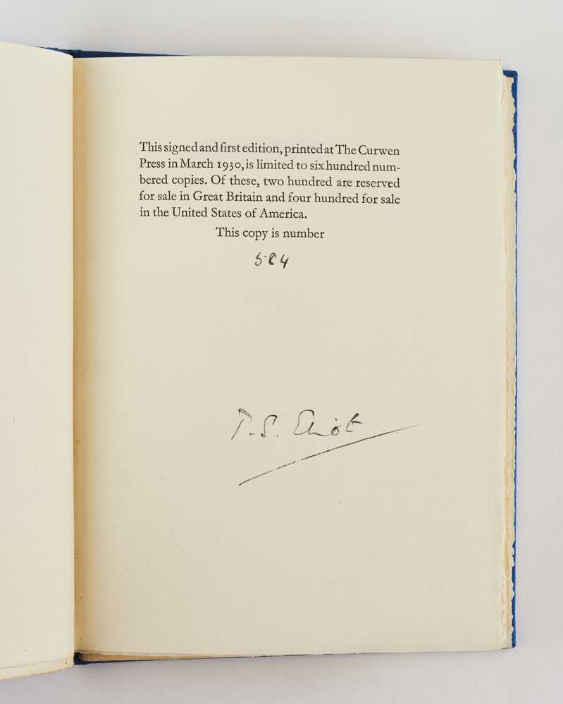 ELIOT, T.S. Ash-Wednesday. London: The Curwen Press. 1930.