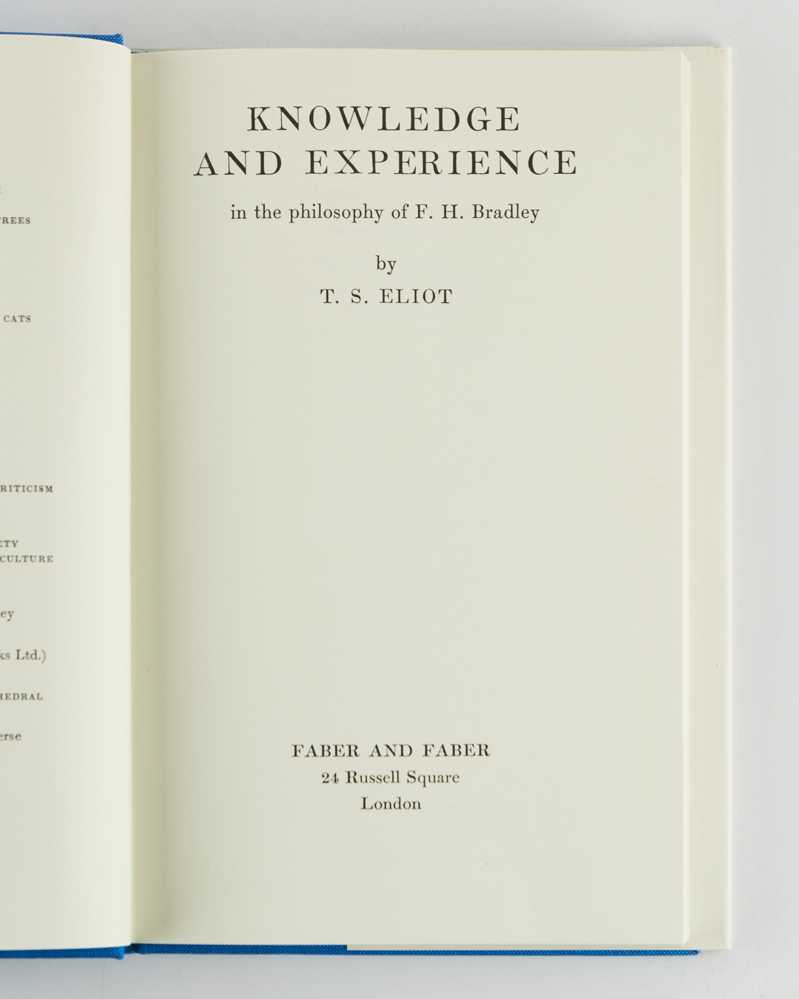 ELIOT, T.S. Knowledge and Experience in the philosophy of F.H. Bradley.