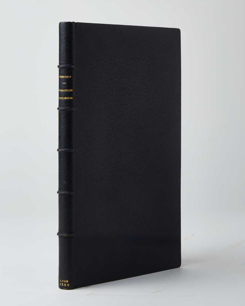 First edition, very rare, of the first French translation of Palaephatus by the Protestant writer Guillaume Guéroult, one of the earliest books printed entirely in Civilité type, this copy handsomely bound by Chambolle-Duru.