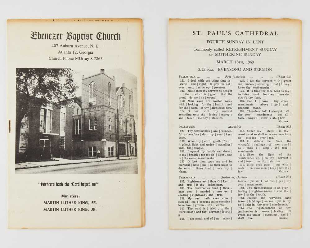 First edition of King’s fourth book, a rare presentation copy inscribed by the author to English journalist John Shirley (1943-2018), offered with orders of service for King’s Ebenezer Baptist Church and St Paul’s Cathedral, together with copies of Shirley’s contemporary articles on King.
