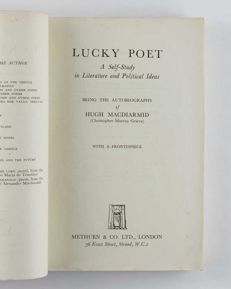 MacDIARMID, Hugh. Lucky Poet. A Self-Study in Literature and Political Ideas. Being the Autobiography of Hugh MacDiarmid (Christopher Murray Grieve). [London]: Methuen. [1943].