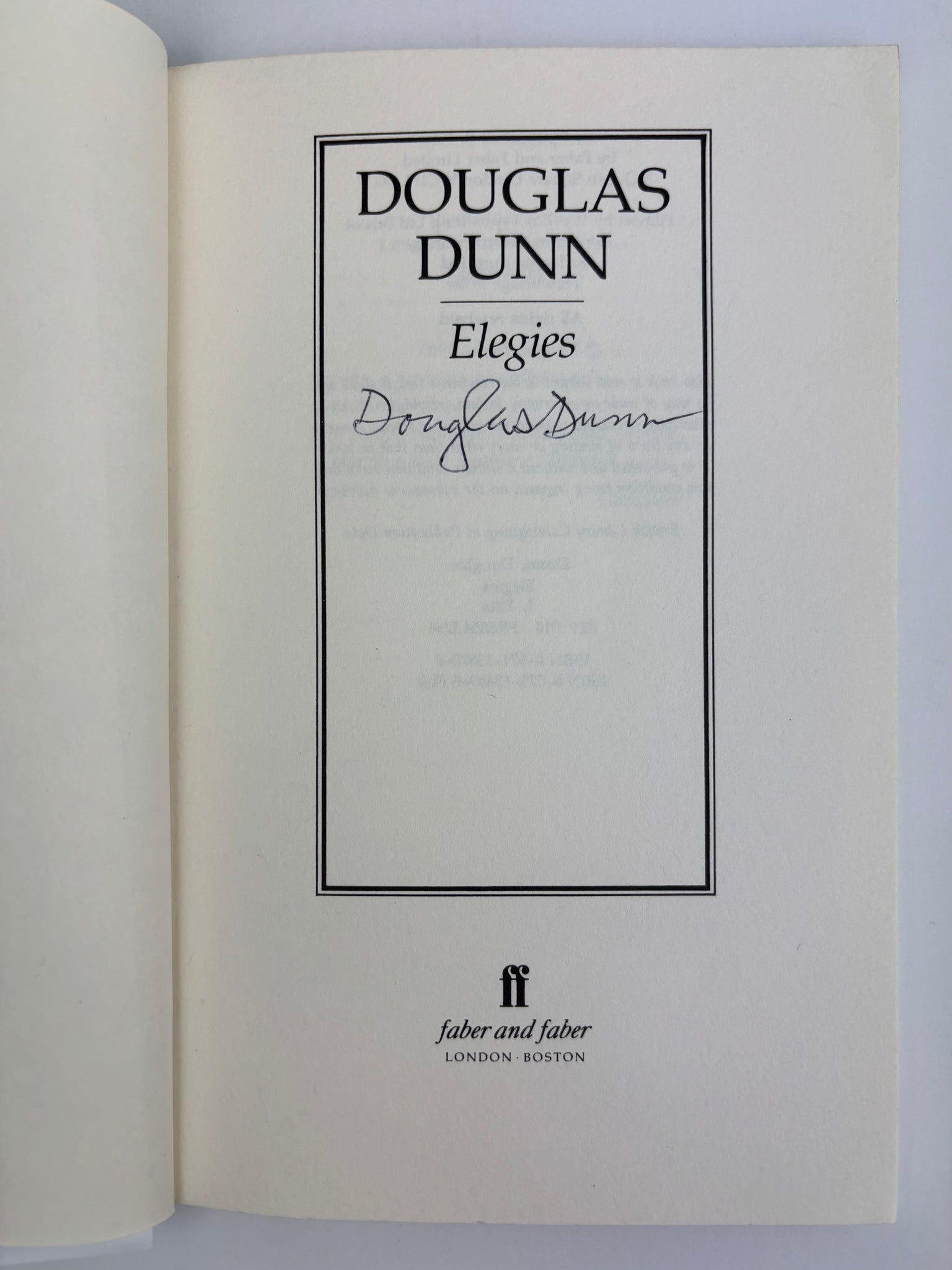 DUNN, Douglas. Elegies. London: Faber and Faber. 1988.
