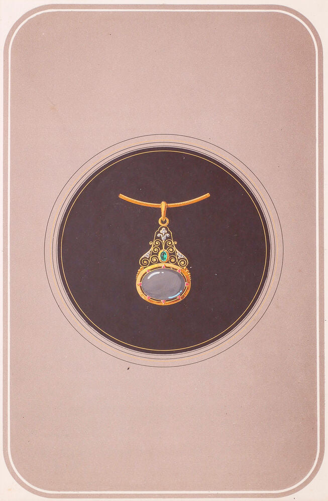 JEWELLERY. Original gouache design - pendant with oval gem. Probably French. n.d., c. 1860.