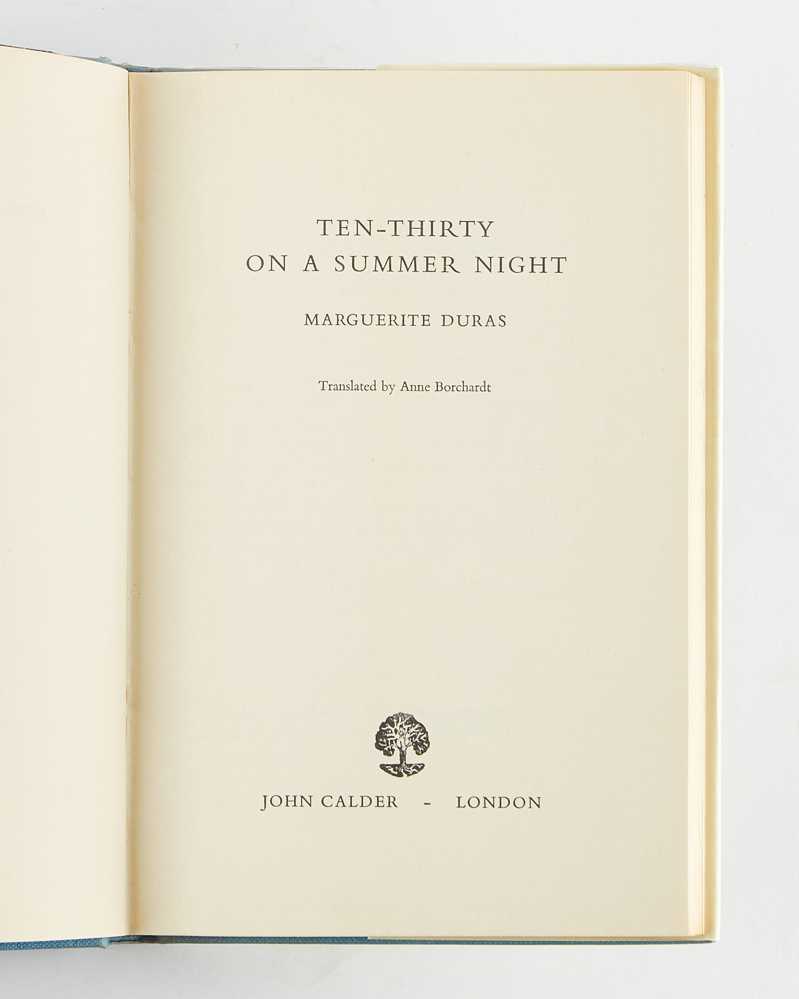 DURAS, Marguerite; Anne BORCHARDT (translator). Ten-Thirty on a Summer Night. London: John Calder. 1962.