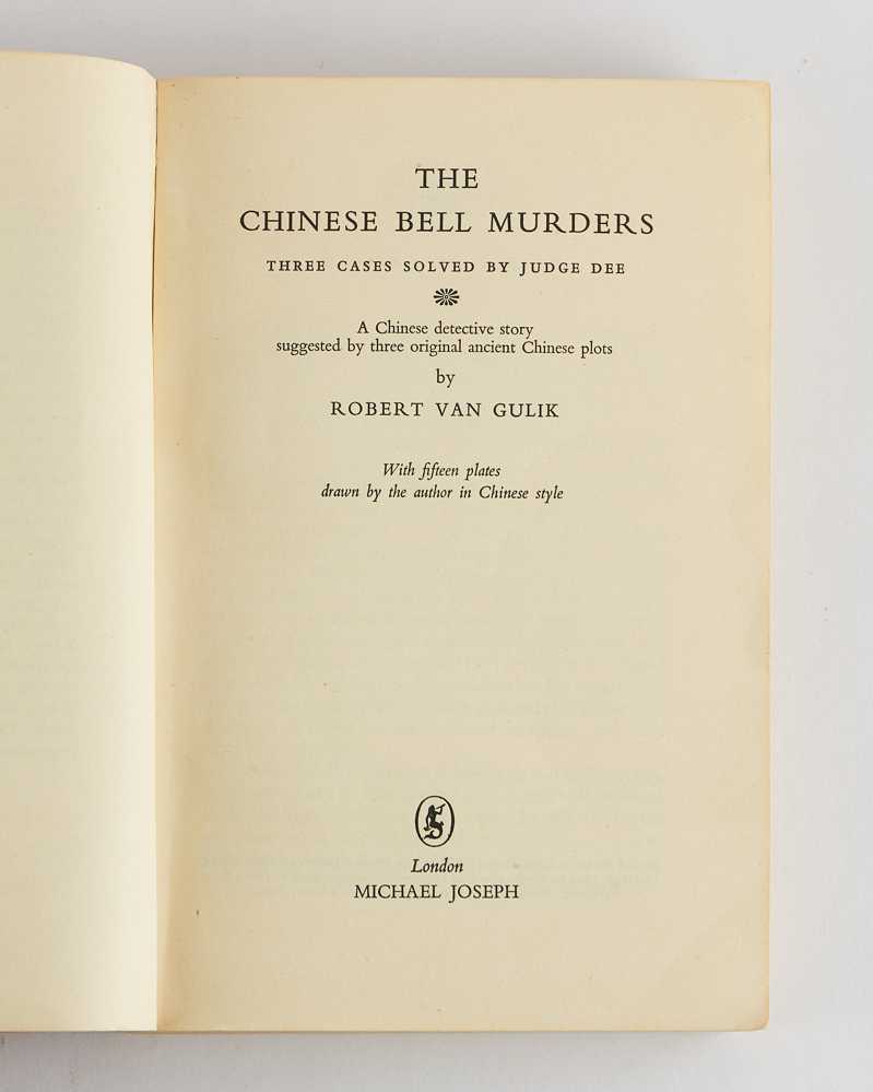 GULIK, Robert van (author and illustrator). The Chinese Bell Murders: Three Cases Solved by Judge Dee. London: Michael Joseph. 1958.