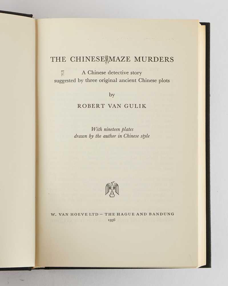 GULIK, Robert van (author and illustrator). The Chinese Maze Murders: A Chinese Detective Story Suggested by Three Original Ancient Chinese Plots. The Hague and Bandung: W. Van Hoeve. 1956.