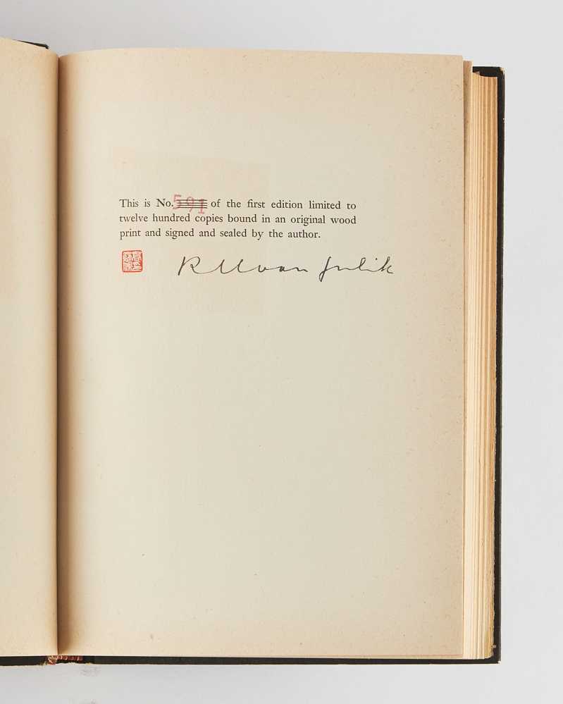 First edition, no. 591 of 1,200 copies signed by the author, of the first English translation of the book that inspired the Judge Dee series.
