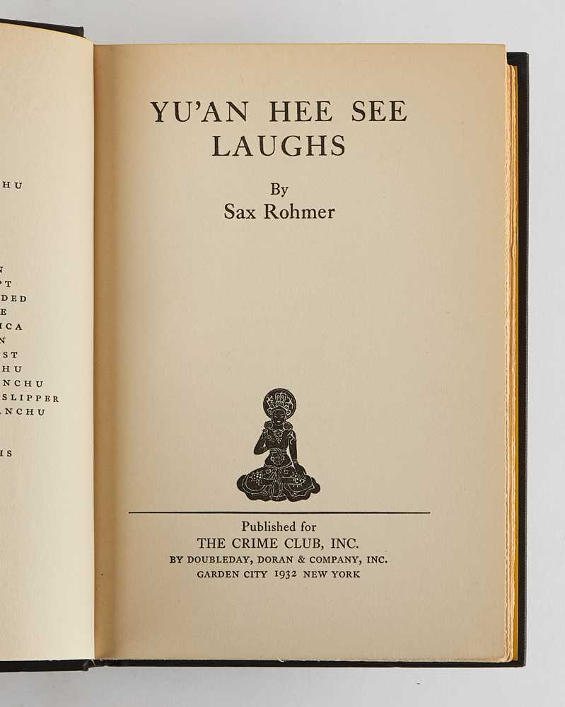 ROHMER, Sax. Yu’an Hee See Laughs. New York: Doubleday, Doran & Company for The Crime Club. 1932.
