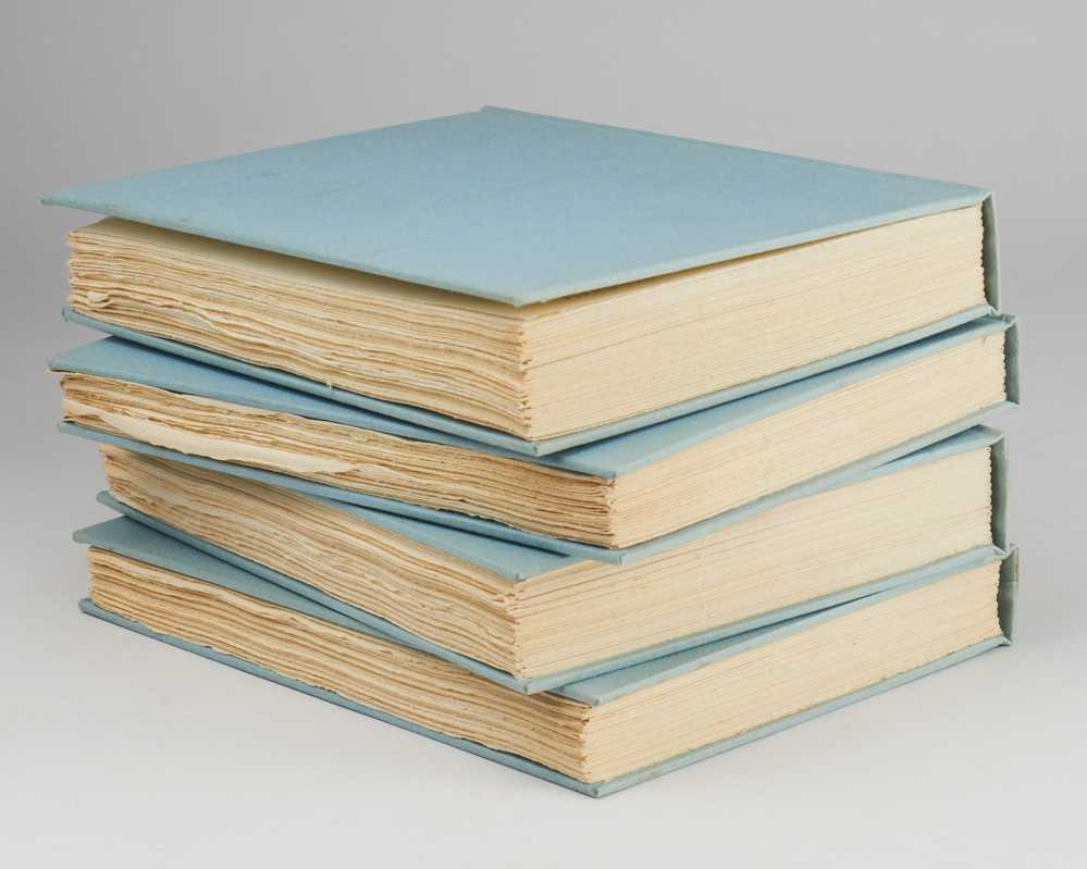 Four vols, small 8vo. Original light blue paper-covered boards, paper labels to spines; unpaginated, each volume with double-page woodcut from the Holkham Bible as a frontispiece, printed in red and black in American Uncial type; very slight sunning to spines, uncut, near fine.