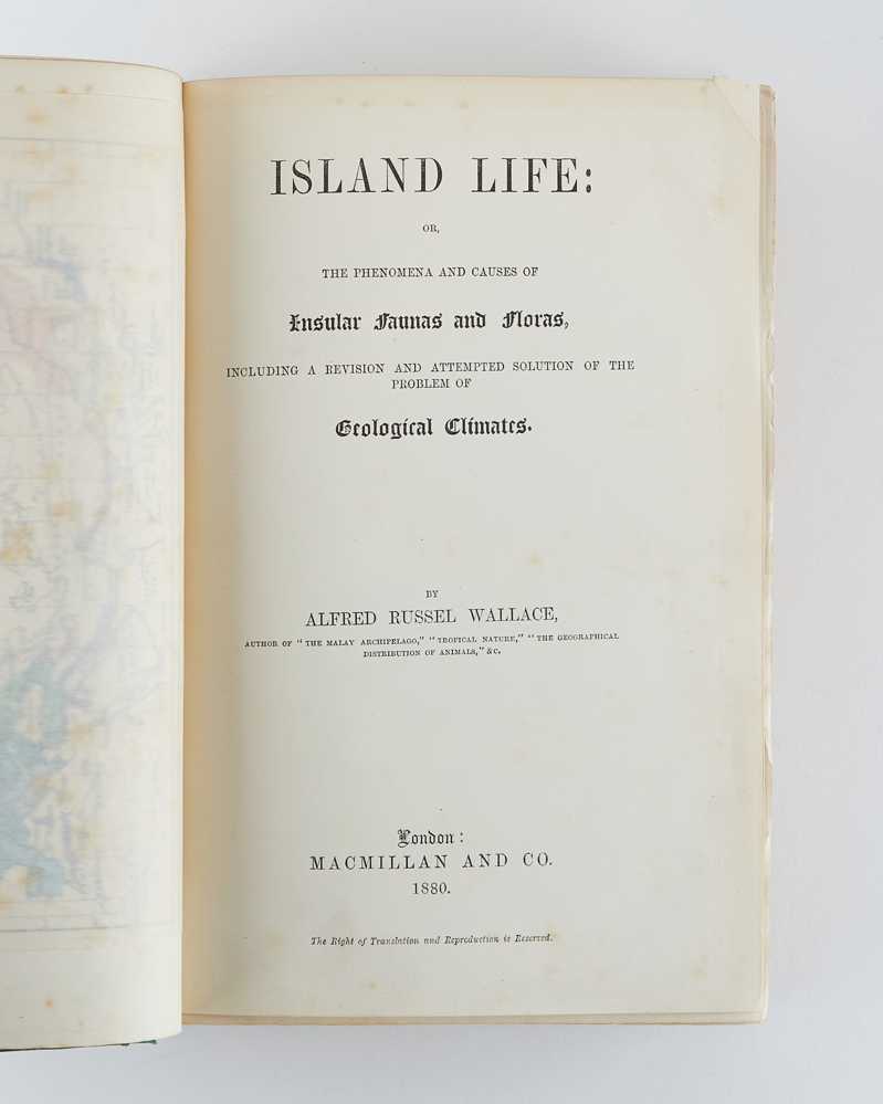 WALLACE, Alfred Russel. Island Life; Or The Phenomena and Causes of Insular Faunas and Floras; Including a Revision and Attempted Solution of Geological Climates. London: Macmillan and Co. 1880.