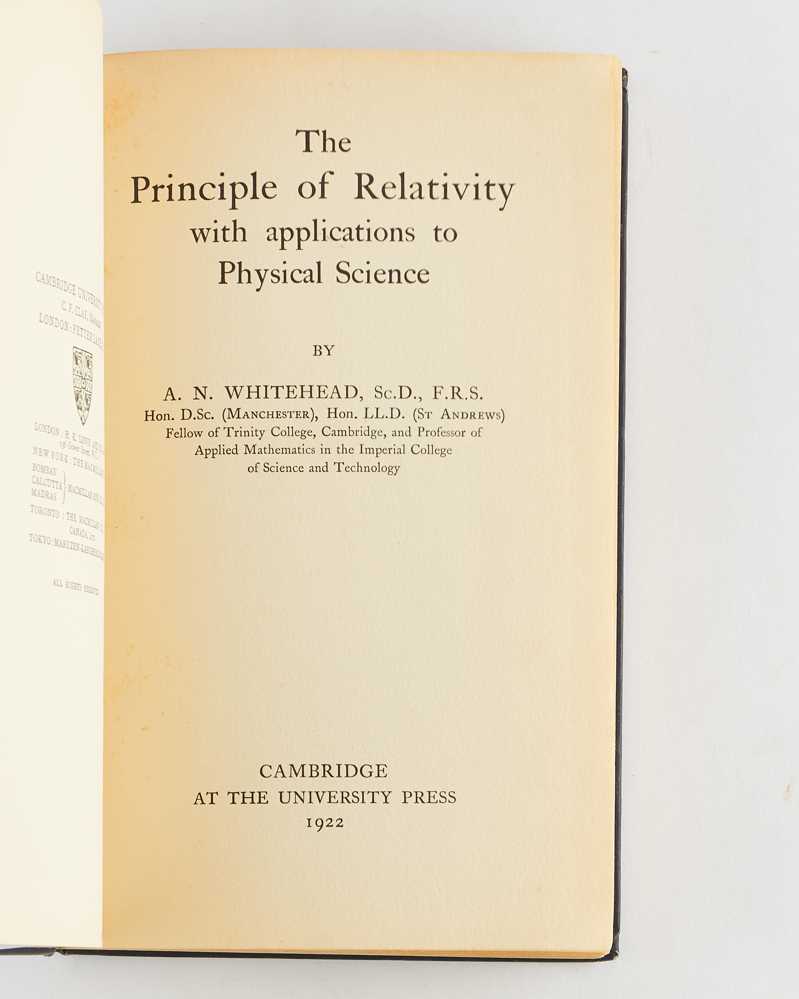 WHITEHEAD, Alfred North. The Principle of Relativity with applications to Physical Science. Cambridge: University Press. 1922.