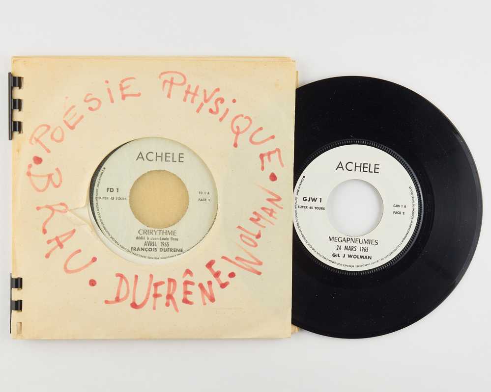 It is also unusual to find all three records together as they have often been separated, and as each recording was only produced to a hundred copies, there are not many on the market. Each of these three Eps are the first solo records by their author. The contents includes Jean-Louis Brauʼs Instrumentations Verbales, François Dufrêneʼs Crirythmes and Gil J Wolmanʼs Mégapneumes.