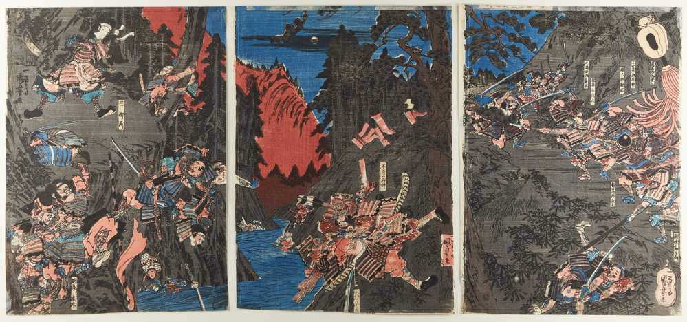 Original woodblock triptych, printed in Japan, c.1837. 420 x 840 mm.