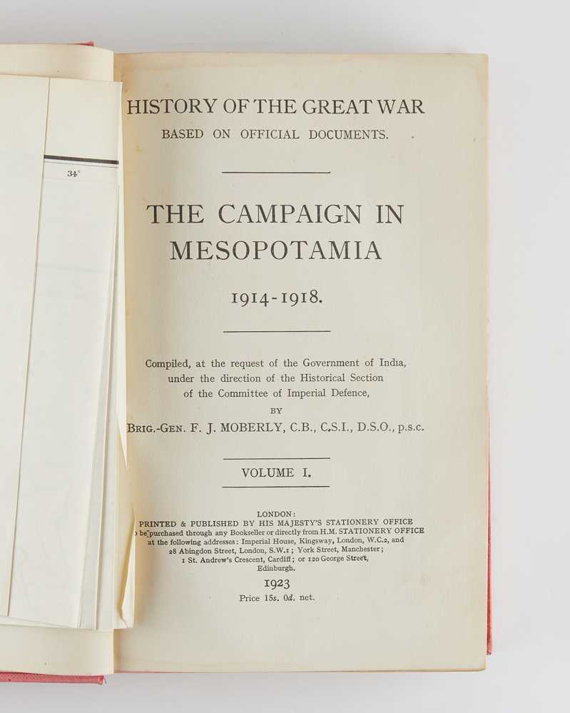 MOBERLY, Frederick James. The Campaign in Mesopotamia 1914-1918. Compiled, at the Request of the Government of India, under the Direction of the Historical Section of the Committee of Imperial Defence. London: HMSO. 1923-1927.