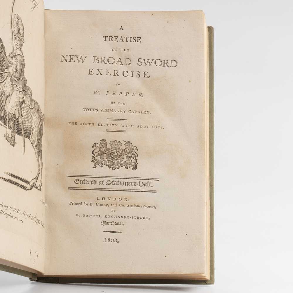 PEPPER, W. A Treatise on the New Broad Sword Exercise … The sixth Edition with Additions. London: Printed for B. Crosby, and Co. … by C. Bancks, Manchester. 1803.
