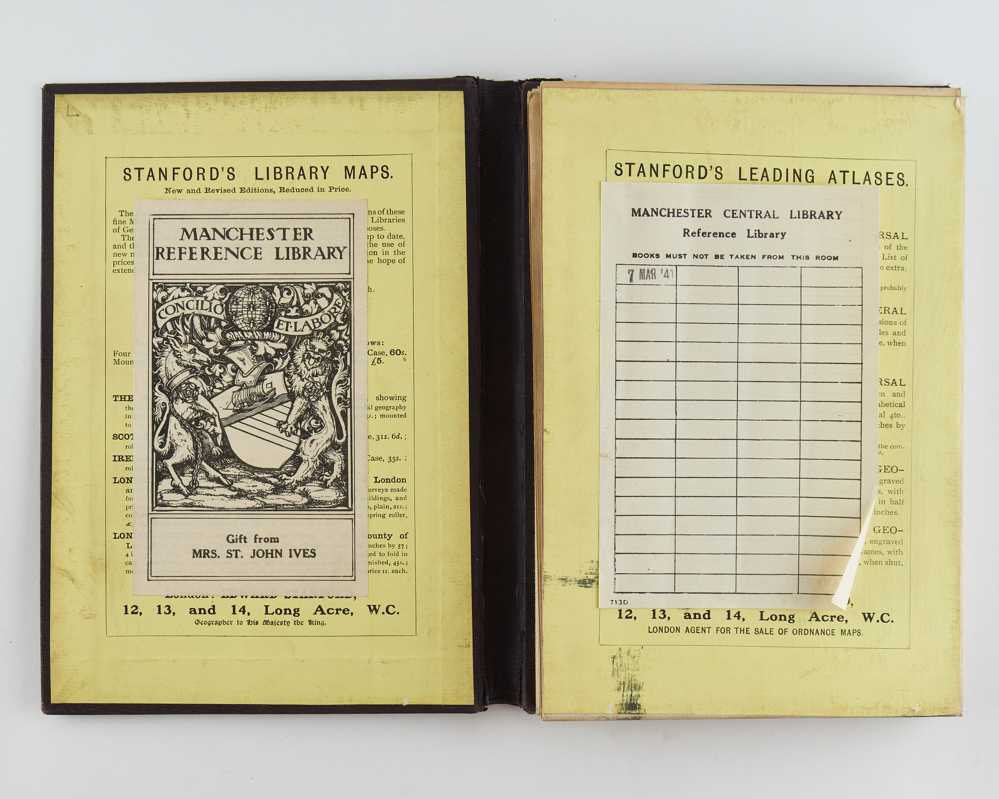 Large lithographic map, hand-coloured in outline, measuring 83 by 113 cm, linen-backed in 32 segments, folding back into the original cloth folder in 8vo with printed title label; spine of folder renewed; from Manchester Public Libraries with their bookplate inside front cover, gilt-stamp on front cover, lending slip (one stamp of 1941) on the verso of one segment, otherwise very good.