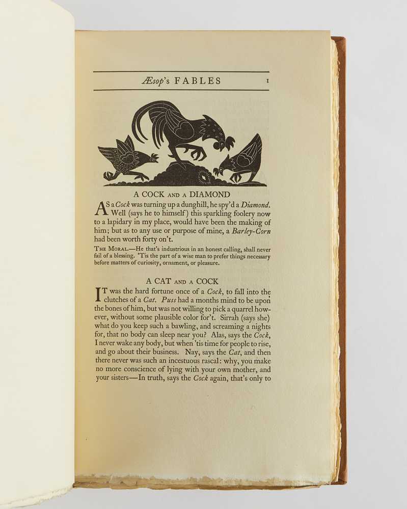 AESOP; Sir Roger L’ESTRANGE (translator). The Fables of Aesop. Waltham Saint Lawrence, Berkshire: The Golden Cockerel Press. 1926.