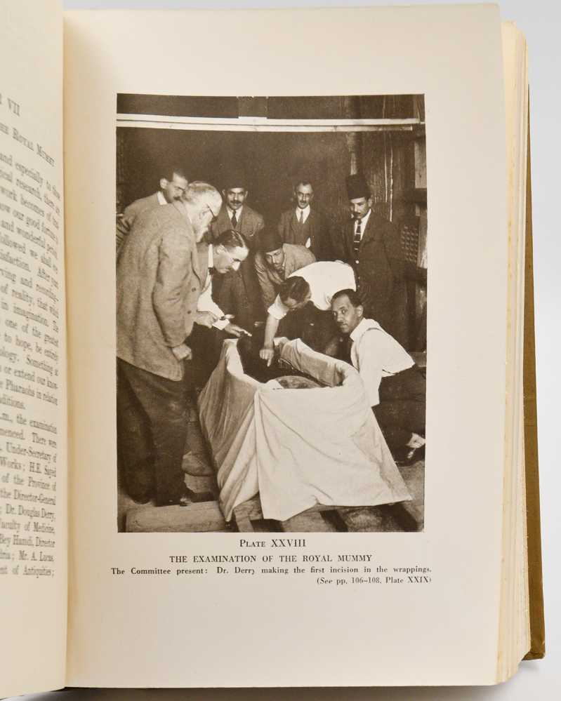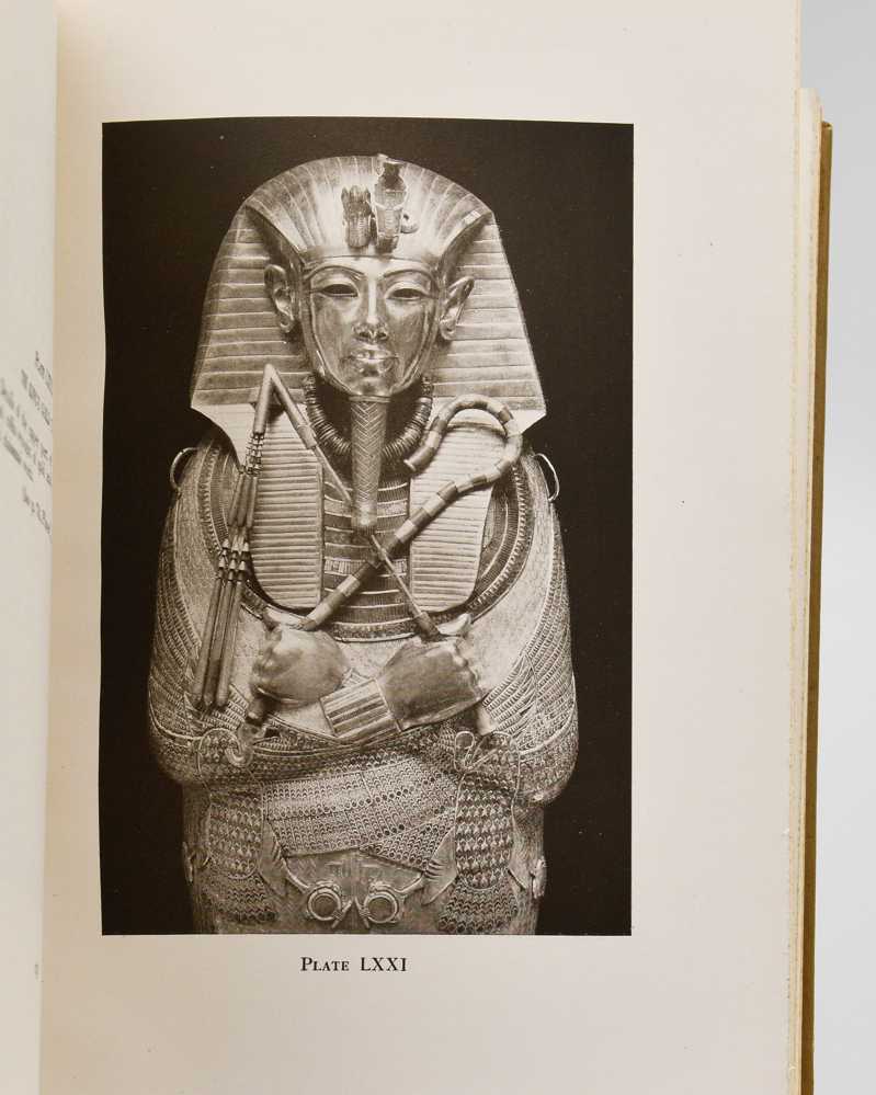 Three volumes, large 8vo. Original brown cloth, lettered in gilt and with gilt-stamped scarab on black shields on front covers (vol. I with shield in leather, sometimes called presentation issue; the other shields are cloth), “Egyptian” decorated endpapers, printed in light sage green; pp. I: xvi, 231, [1]; II: xxxiv, 277, [1]; III: xvi, 247 [1]; numerous plates after photographs by Harry Burton; front cover of vol. II a little mottled and with short repaired tear to head of spine, only very sporadic minimal spotting to text; a very good set.