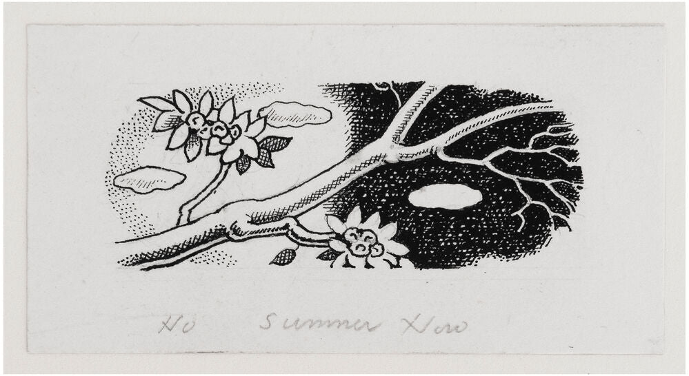 Original fine pen-and-ink vignette for Selected Poems by the Second World War poet John Pudney with caption below in pencil, apparently by the artist,, image size 7.5 x 3cm; professionally laid down on white card and presented in ivory-coloured acid-free mount; fine.