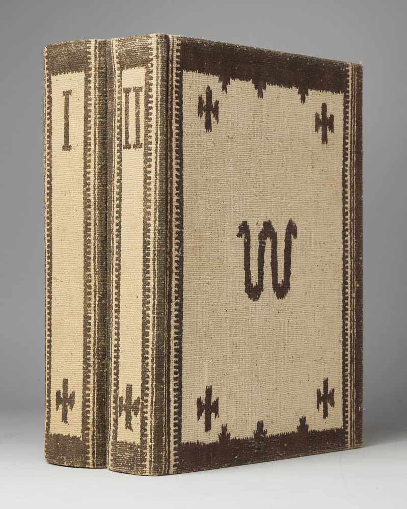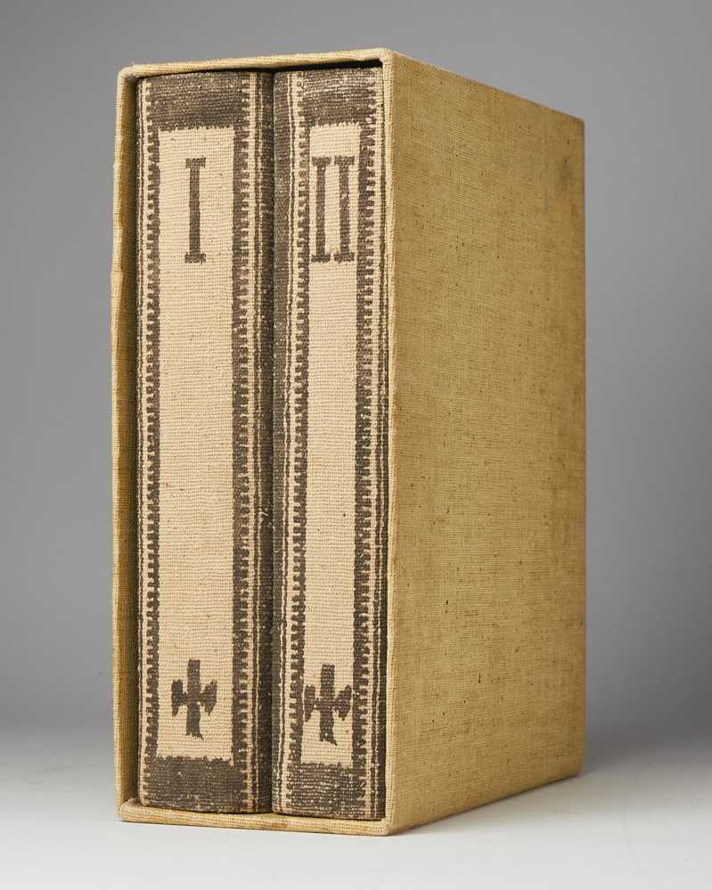 Carl Hertzog (1902-1984) was one of the leading printers, typographers, and book designers of the United States in the middle of the 20th century. 'Effective printing, he held, should help the reader focus on the content; it should never call attention to itself. He carefully selected the size and shape of the book, paper color and texture, style of type, and binding to suit the subject matter. Once the type was set he would rework it to avoid bad spacing and breaks at the end of lines and pages. Finally he would check the press run for variations in inking, all for the sake of enhancing the appearance of the printed page. He campaigned tirelessly to raise awareness of and appreciation for printing' (Texas State Historical Association, Handbook of Texas, online). The Texas artist and writer Thomas Calloway Lea III was a friend of the printer. 'His two-volume history The King Ranch (1957) was considered by some scholars to be the greatest ranching history ever written' (ibid). - This is the first issue with page 507 in volume two beginning with the word 'Alice'. - Not a single copy of this edition was for sale; the book was produced to be given to friends, guests and business partners.