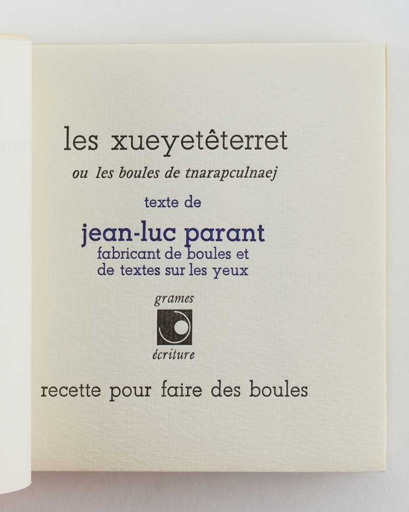 PARANT, Jean-Luc. Les Xueyetêterret: ou les boules de tnarapculnaej | recette pour faire des boules. France: Grames Écriture. 1977.