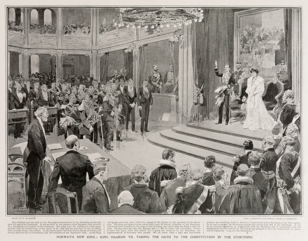 The Graphic. Norway's New King: King Haakon VII. taking The Oath of the Constitution in The Storthing.